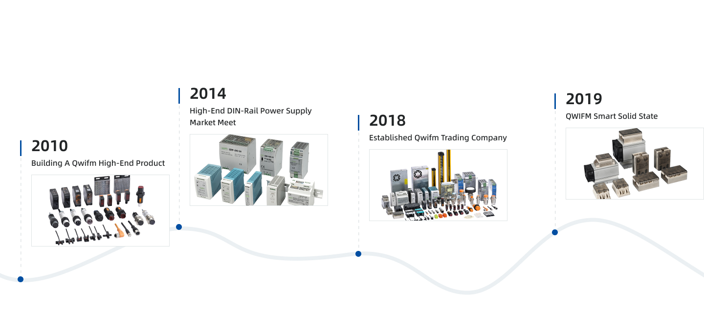 Since its establishment, Q&W has been focusing on a series of products such as sensors, solid-state relays, encoders, switching power supplies, and industrial automation. With the joint efforts of all employees, the company's product series has achieved diversification, novelty, and comprehensiveness from product production, sales, research and development, and technological innovation. From economical to high-end intelligent, it has become one of the leading manufacturers in the domestic market. In 2018, Q&W also founded the QWIFM brand. QWIFM also focuses on industrial products such as smart sensors, smart solid-state relays, and high-end DIN rail switching power supplies.